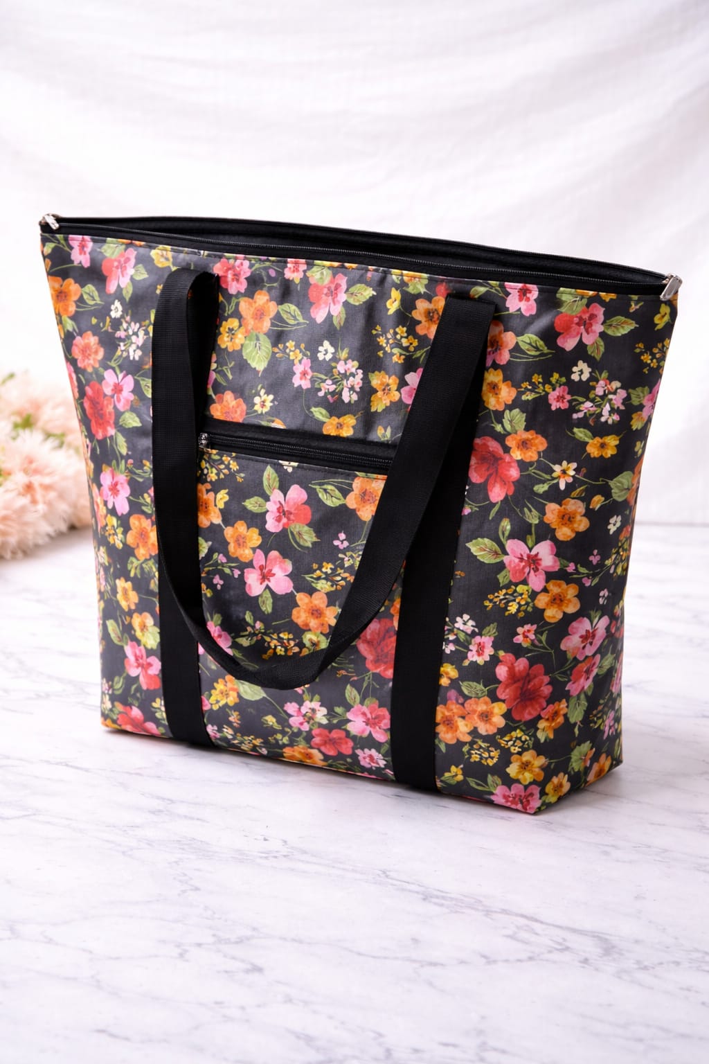 Chic meets functionality in this must-have Grey Yellow Floral Big Tote Bag! 🌼 Crafted for the woman who’s always on the move, this bag features a roomy interior to fit everything from your shopping finds to travel essentials. The vivid floral design on a classic grey base makes it an instant head-turner, while the front zipper pocket ensures your money, cards, or keys stay safe and handy. Carry your world in style — whether it’s a busy weekday or a lazy beach day! 🌸